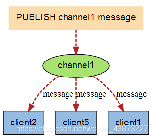 当有新消息通过 PUBLISH 命令发送给频道 channel1 时, 这个消息就会被发送给订阅它的三个客户端: